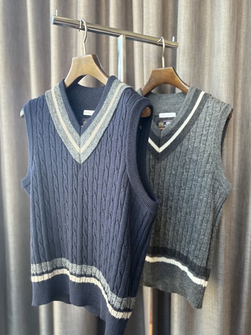 国内老舗ニットブランド「GIM」に製作依頼をした英国ウールのベストであり、