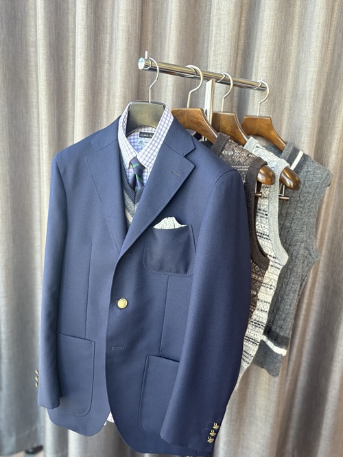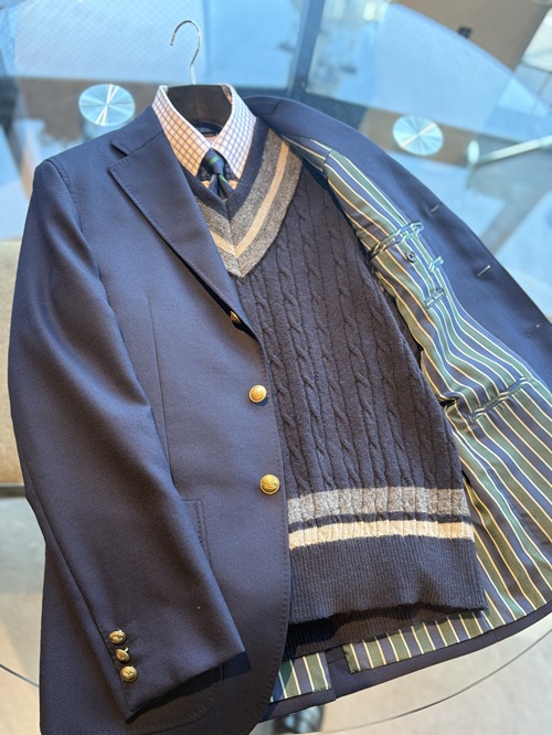 紺ブレの下に合わせる定番スタイルからツイード生地のジャケットや