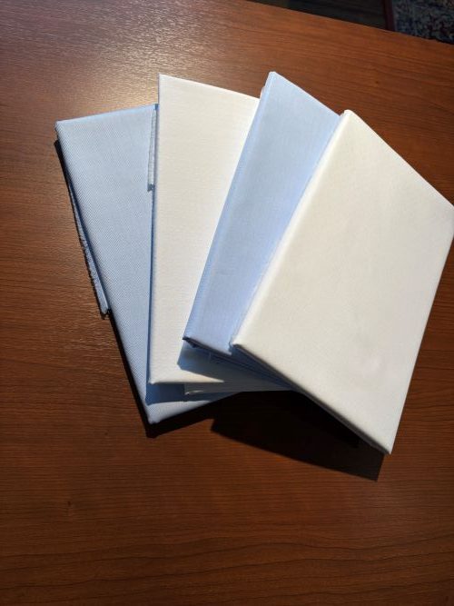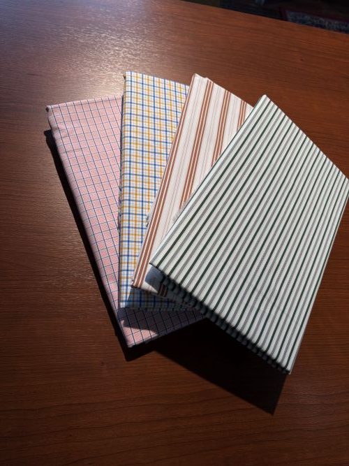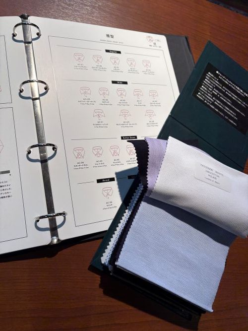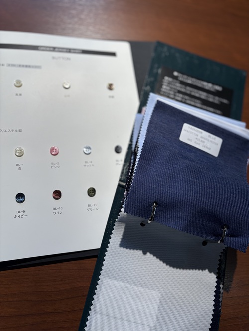 選べる生地は豊富でコットン素材の白からサックスブルー