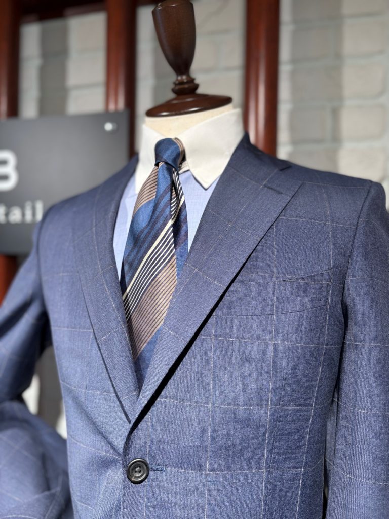 ブルーラインが特徴的でスーツを着る機会が少なくなるシーズンに、春らしい爽やかさを演出してくれます。比較的長いシーズン着られるのもポイントです。