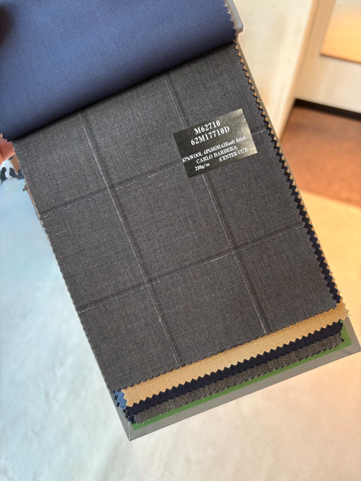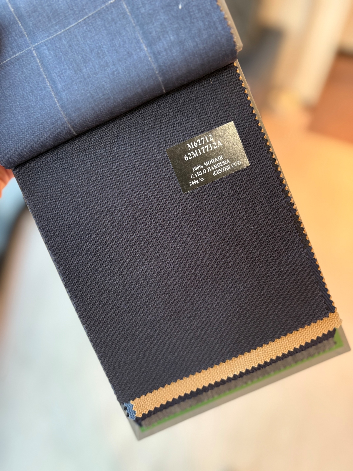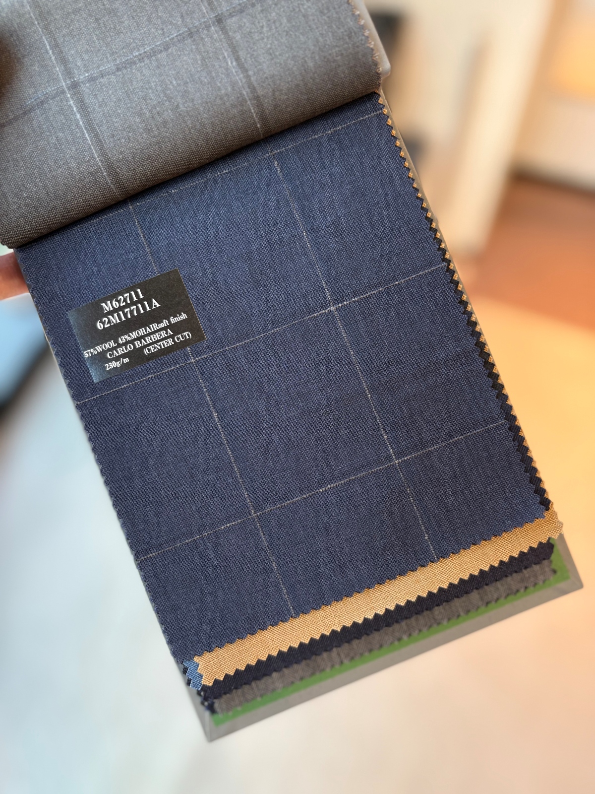 今季、麻布テーラーは初めてイタリアのカルロ・バルベラに別注を行いました。カルロ・バルベラは美しい発色と柔らかな生地とともに、英国調のヴィンテージな味わいの生地も得意とし、イタリアの生地メーカーには珍しく、タテヨコに双糸を使ったカッチリしたモヘア100%生地も通常展開。