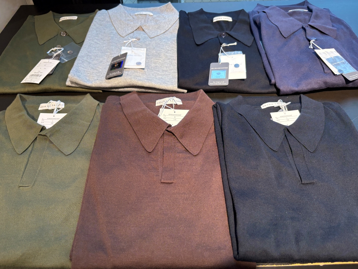 麻布テーラー名古屋栄店では当日お持ち帰りいただける既製品のポロシャツを他にもご用意しております。夏本番を迎える前に、ぜひ一度店頭にてご覧くださいませ。