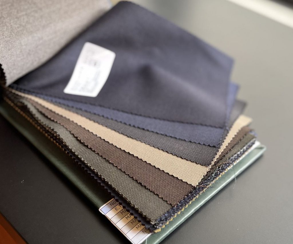ですが、タテ糸にはウール100%の糸を使用しており、そのタテ糸が多く表側に出る織り方をしているため、表面にはウールの光沢や高級感のある生地感が見えてきます。