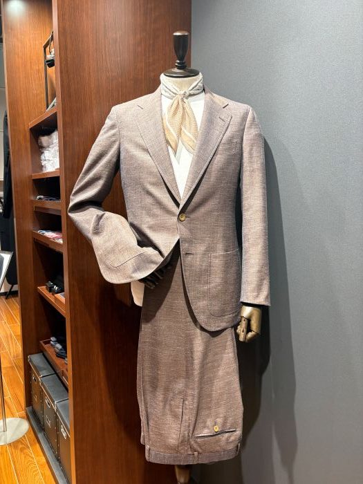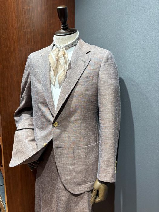 今回ご紹介させていただきのはウール、リネン、シルクの3者混”セットアップスーツ”になります。