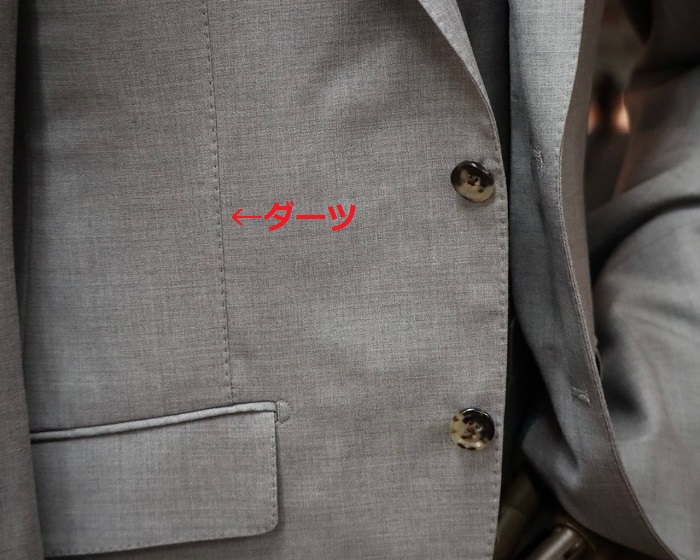なんと、「フロントダーツ無し」デザインとなっています。アメトラブレザーによくあるやつですね。