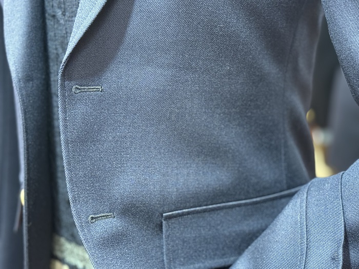 生地はブレザー定番のサージ生地。ホップサックも良いですが、せっかく冬物で仕立てるなら目の詰まったサージ生地もオススメです。