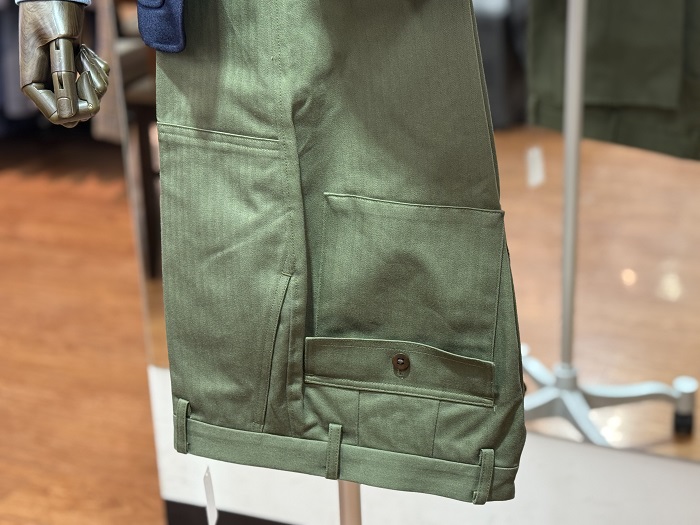 アメリカ軍由来のベイカーパンツを、テーラードの美しいシルエットで再構築。L字型フロントポケットやパッチ&フラップヒップポケットを踏襲しつつ、天狗仕立てやマーベルトでフィット感を確保。カジュアルとドレスの絶妙なバランスを楽しめる一本です。