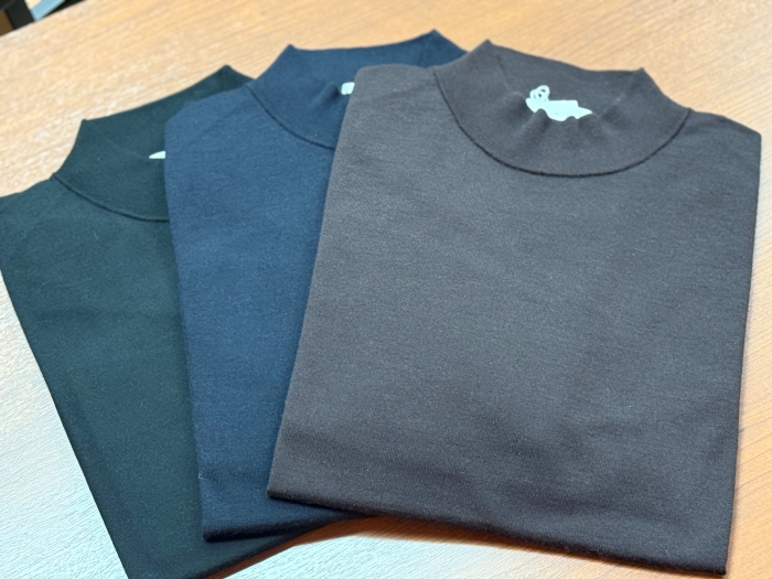 メリノウールにカシミヤを15%ミックスしたモックネックセーター。防縮加工を施したオーストラリア産のメリノウールは、摩擦にも強く、滑らかな風合いと光沢が特徴です。カシミヤをミックスすることで、大変肌触りの良いセーターに仕上がっています。