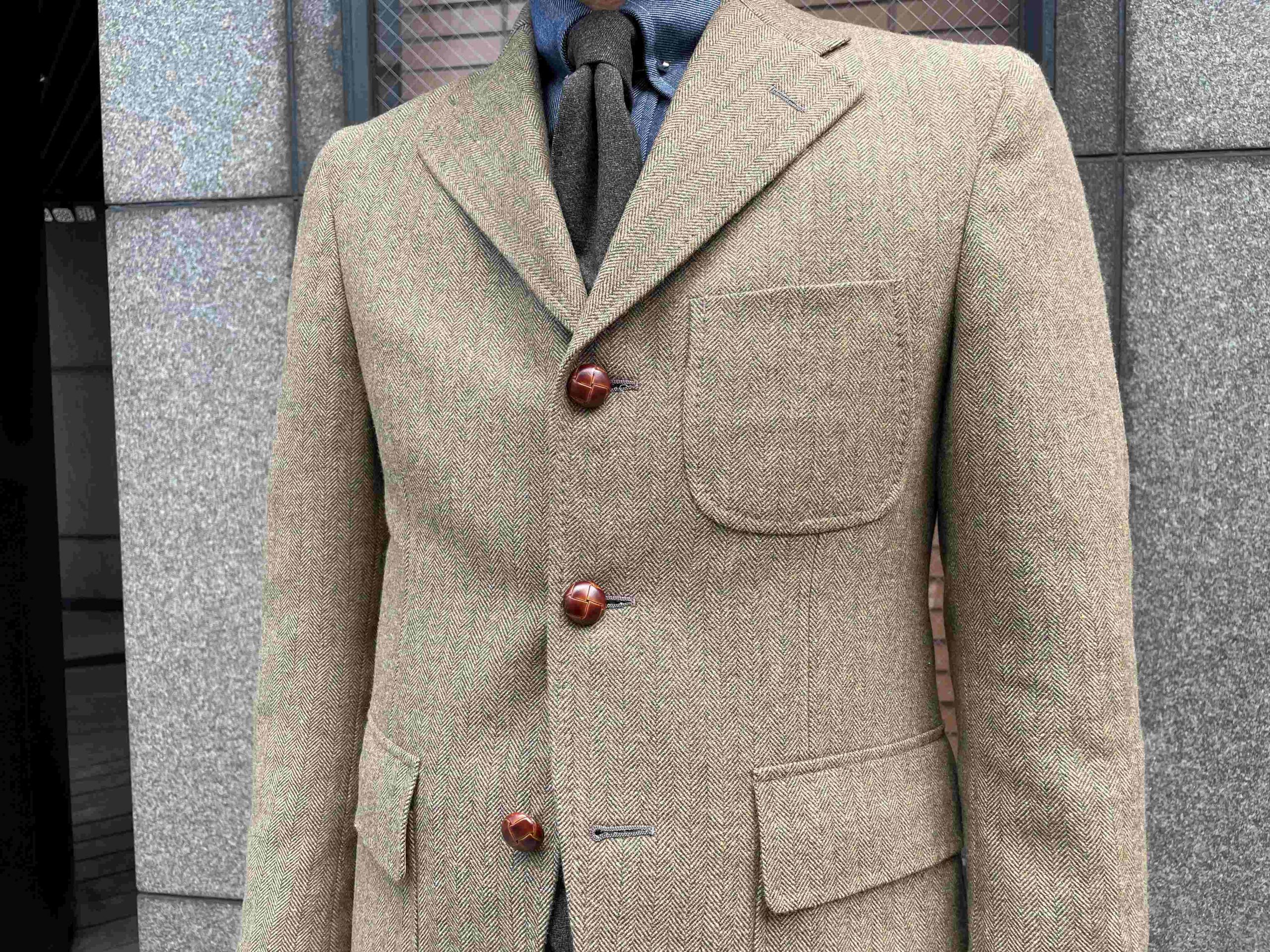 コーディネートの基本はスーツよりもジャケットに合わせるのがいいかと思います。もちろんスーツで合わせて、敢えて襟の釦を外すというこなれた着方もありです。ビジネスから、普段のデニムスタイルにまで相性抜群な一枚ですので、何枚持っていてもいいですね。