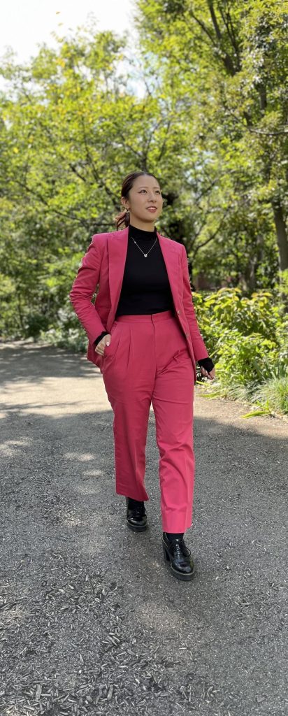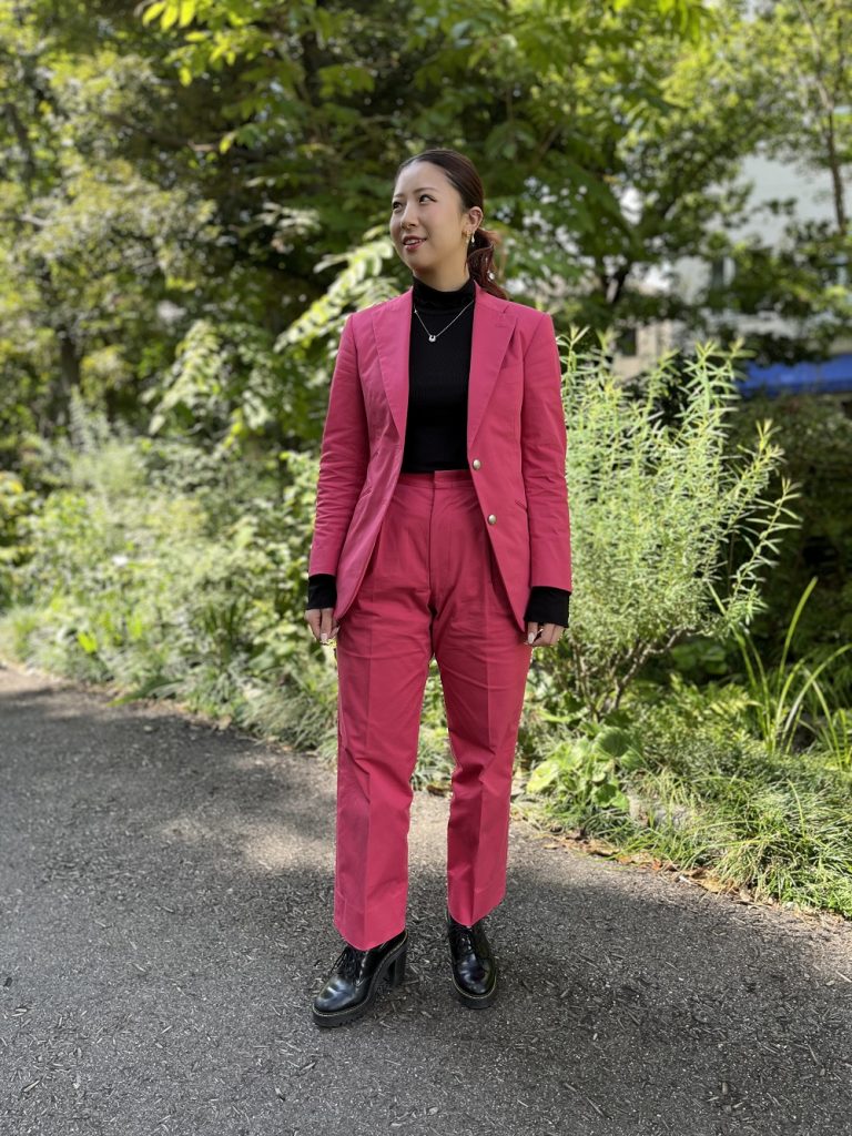 ③ピンク無地 Cotton-Elastane セットアップスーツ