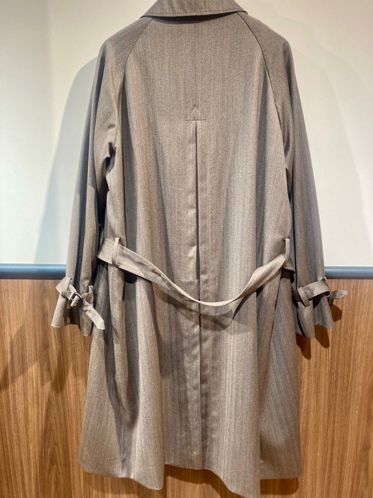 皆様が思い浮かぶ『THEトレンチーコート』といったような英国ブランドのWトレンチ+ミリタリーギミック+機能性を盛り込んだクラシックデザインとはまた違う趣です。