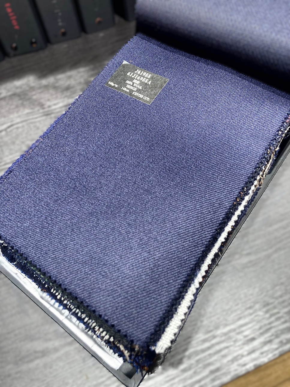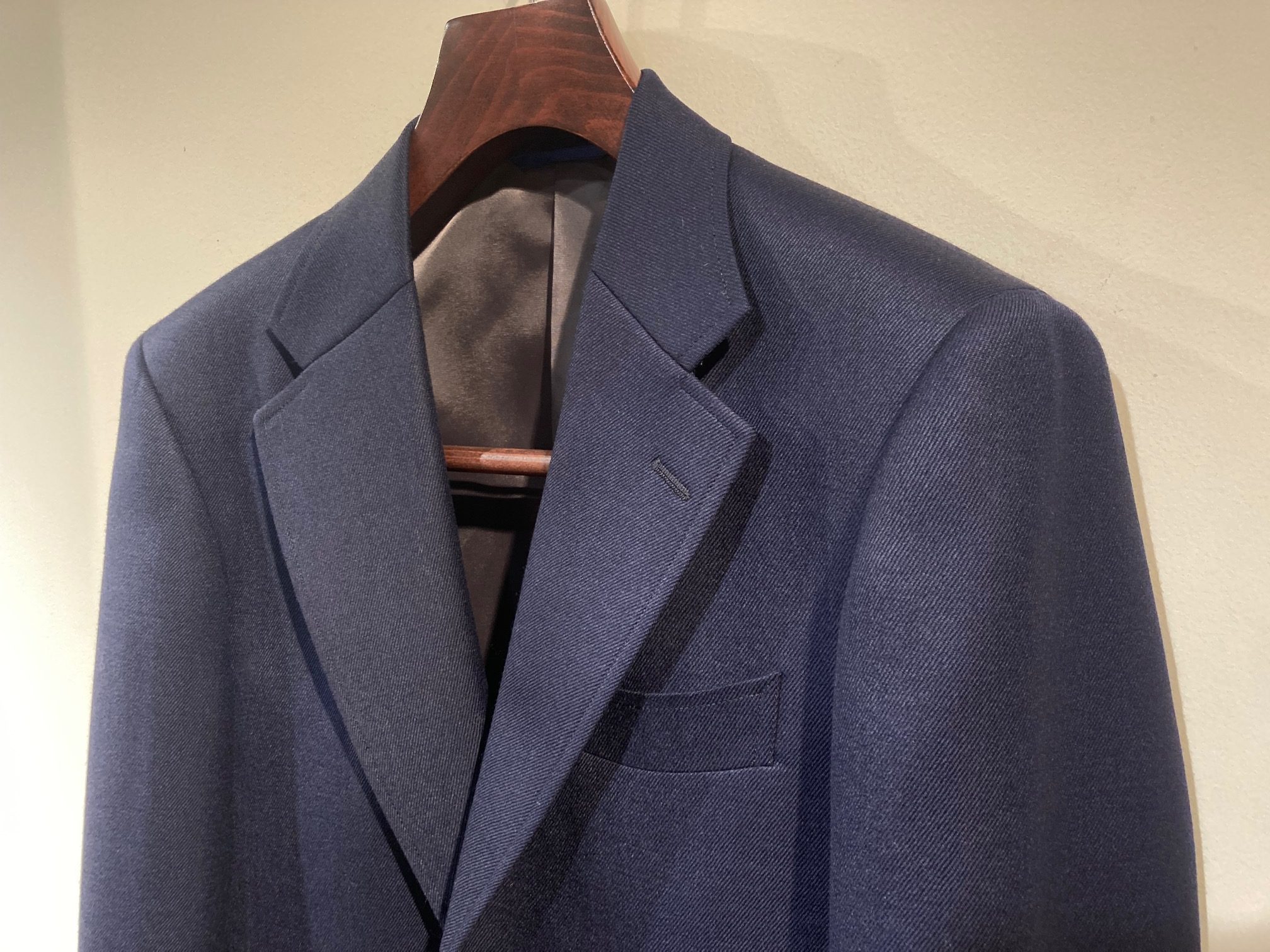サンプルの生地は国産の肉厚なサージ生地。仕立て映えのする生地のふくらみを感じます。