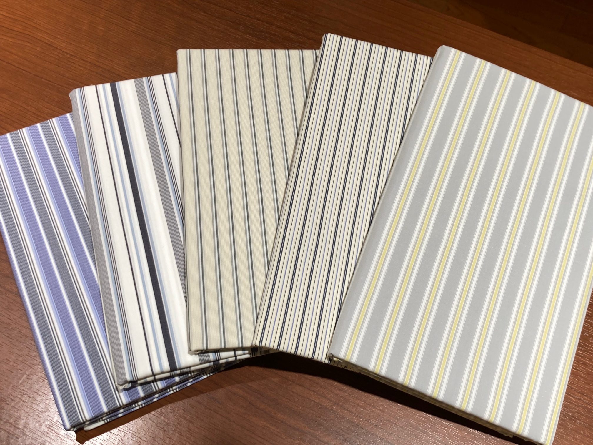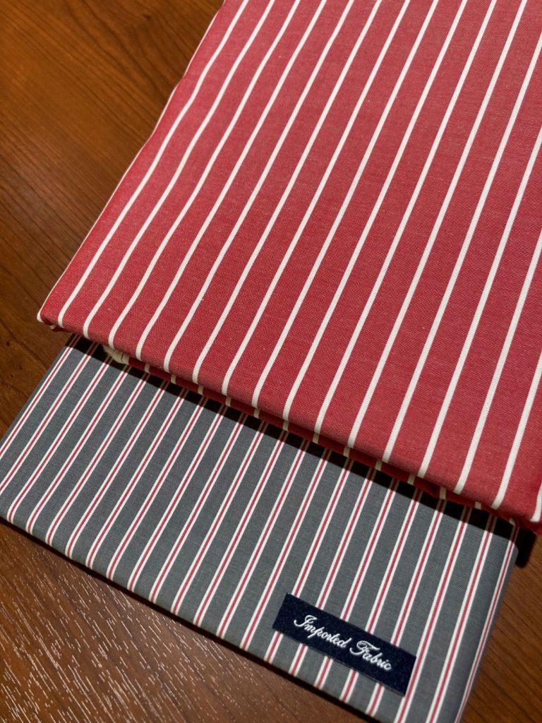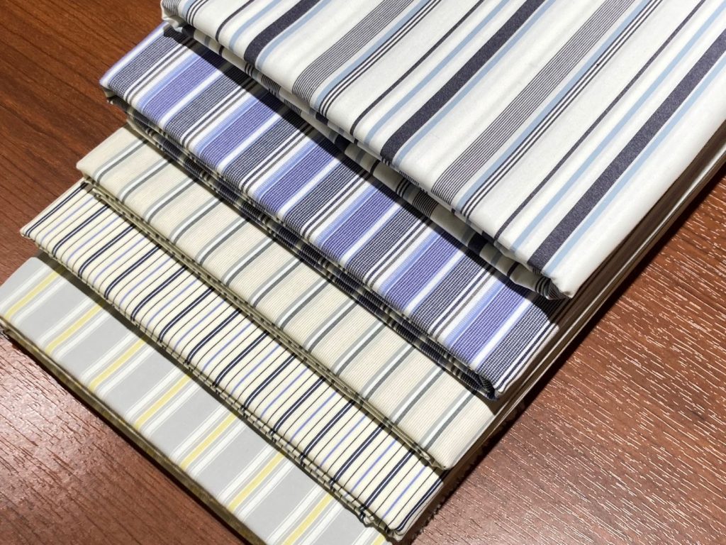 こちらはインポート生地らしい発色、生地の滑らかさが特徴の広めのストライプ。