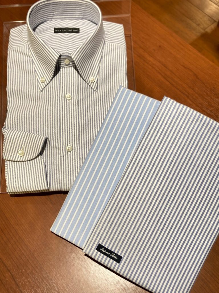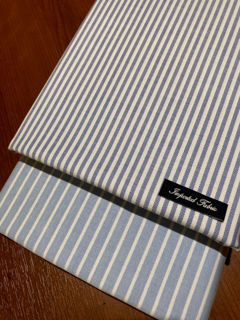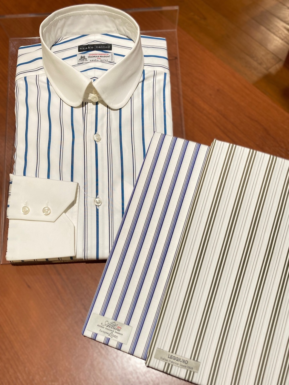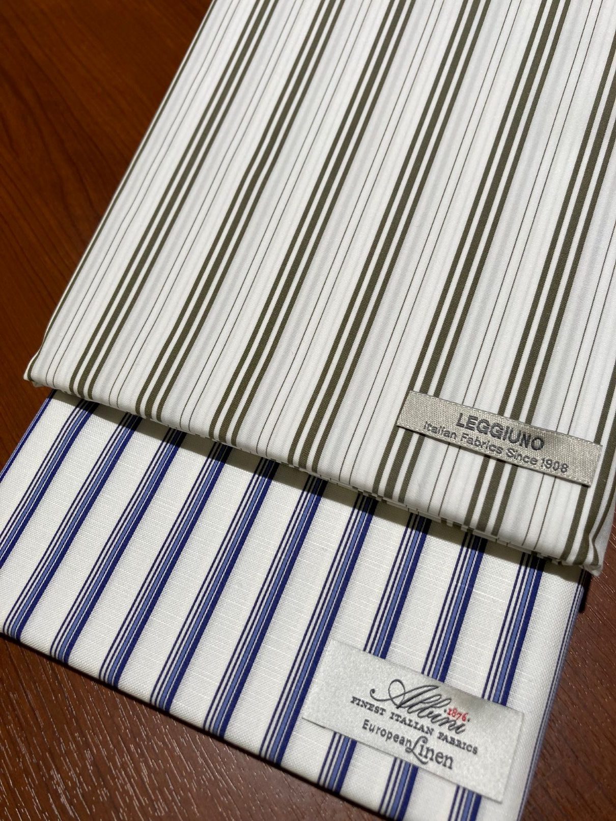 こちらはインポート生地らしい発色、生地の滑らかさが特徴の広めのストライプ。