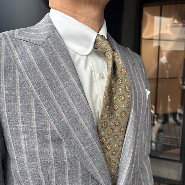 他のストライプとまた違った色合い、存在感がスーツをより引き立ててくれます。