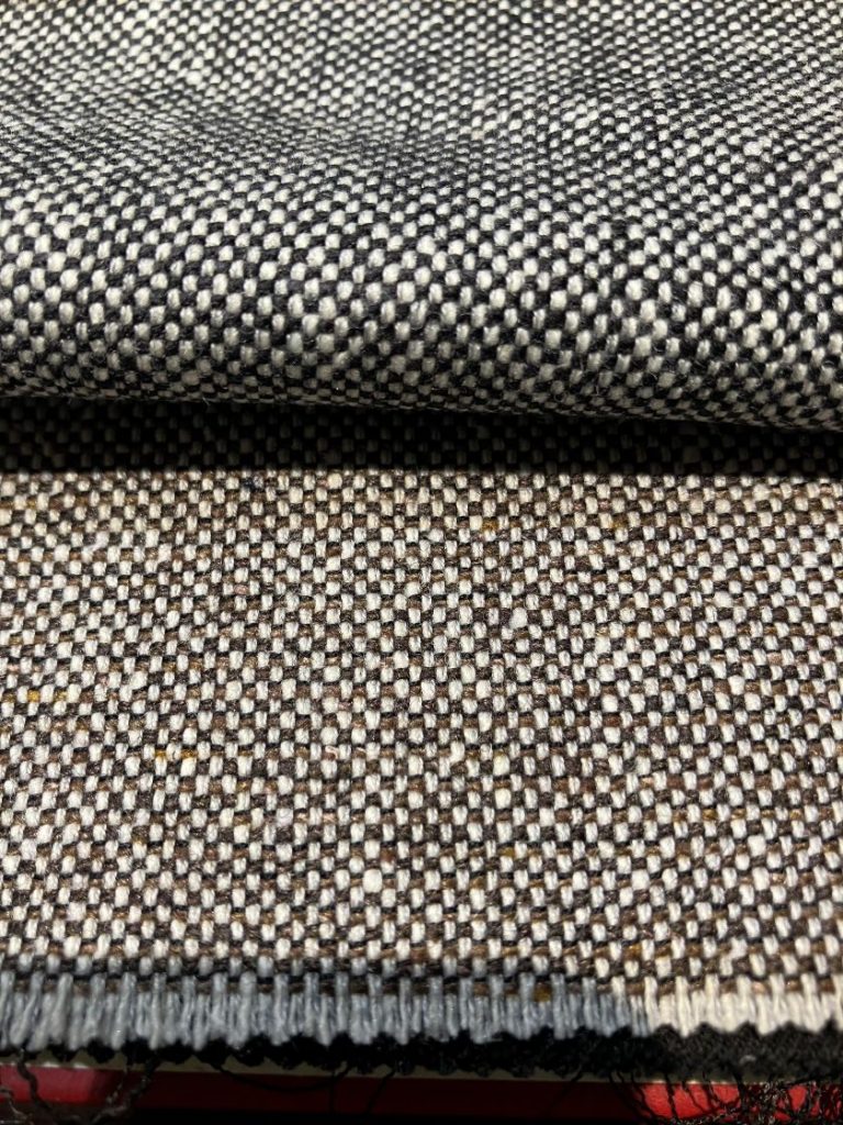 ドネガルツィードはカラフルなネップ(繊維の節、塊)と粗い糸による自然な風合いが特徴ですが、こちらの生地は上質な糸を使用することで高級感が出ています。