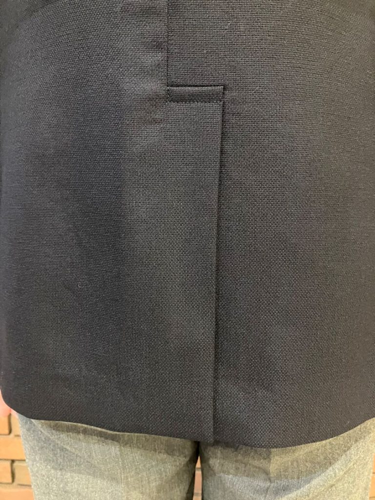 シルエットについてですが、本来アメトラのブレザーはボックスシルエットですが、こちらは軽く絞りが入っています。