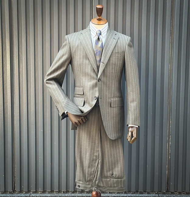 ストライプ柄も主張しすぎず、ややかすれたような仕上がりになっているため、柄物でありながら非常に落ち着きのある印象を与えます。