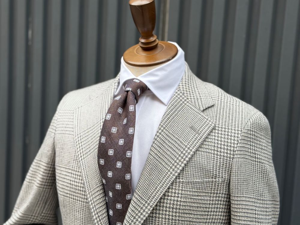 グレーとブラウンの絶妙なバランス がこの生地の最大の魅力です。