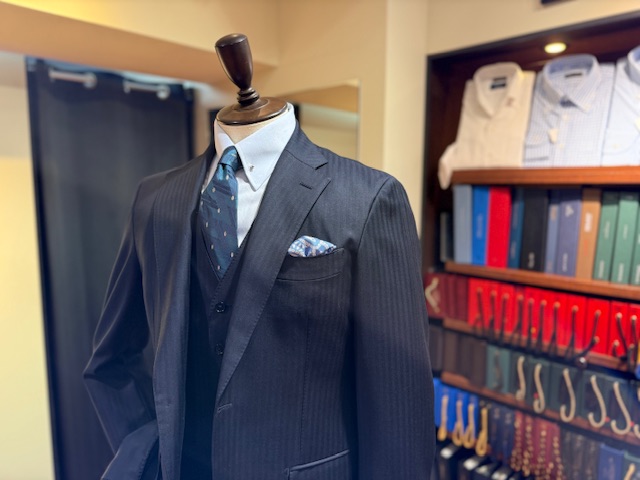 ぜひ店頭で、生地感とシャドーストライプの表情を実際にご覧ください。