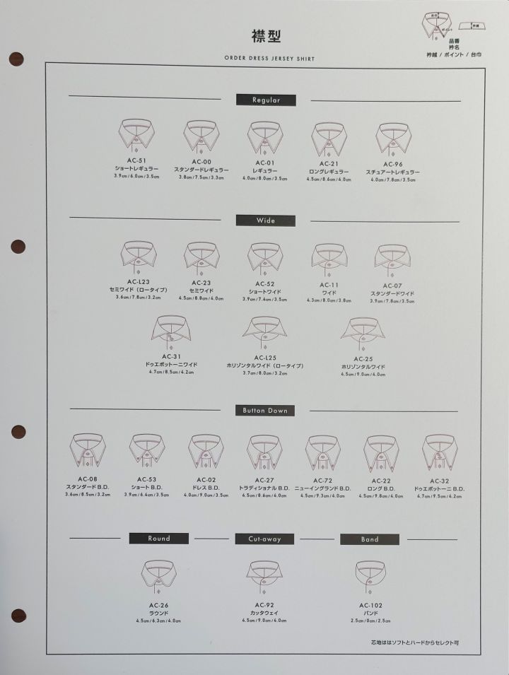 ノーネクタイの方にはショートレギュラーやボタンダウンも