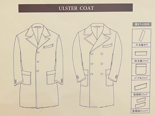 アルスターコートと言えばダブル仕様が一般的ですが、シングルでのお仕立ても可能です。