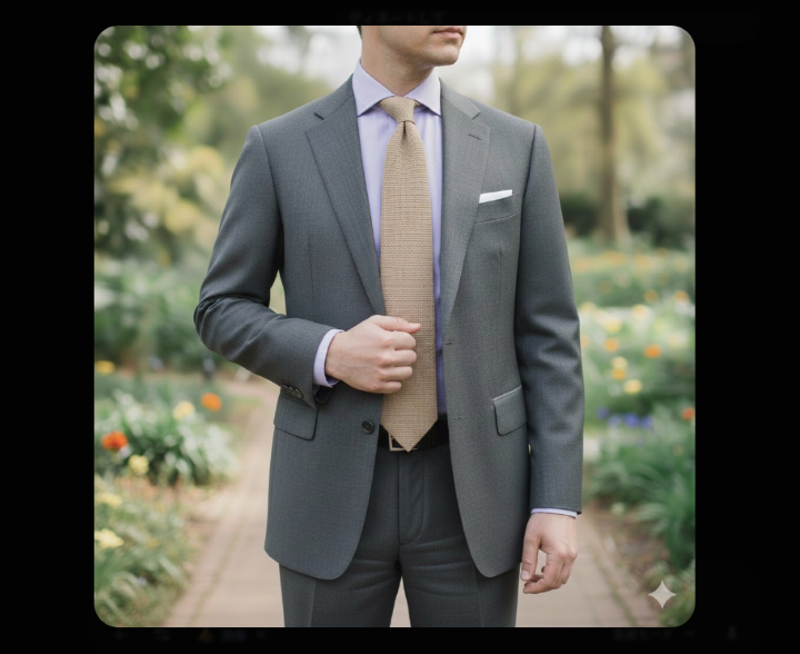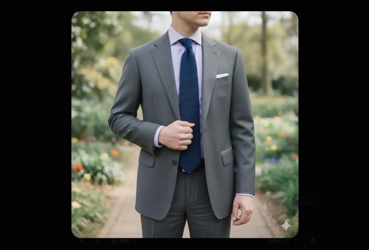 ねえジェミニ、グレー無地スーツ・ラベンダーシャツ・ブルーニットタイでコーディネートして(表現語彙の少なさに辟易)