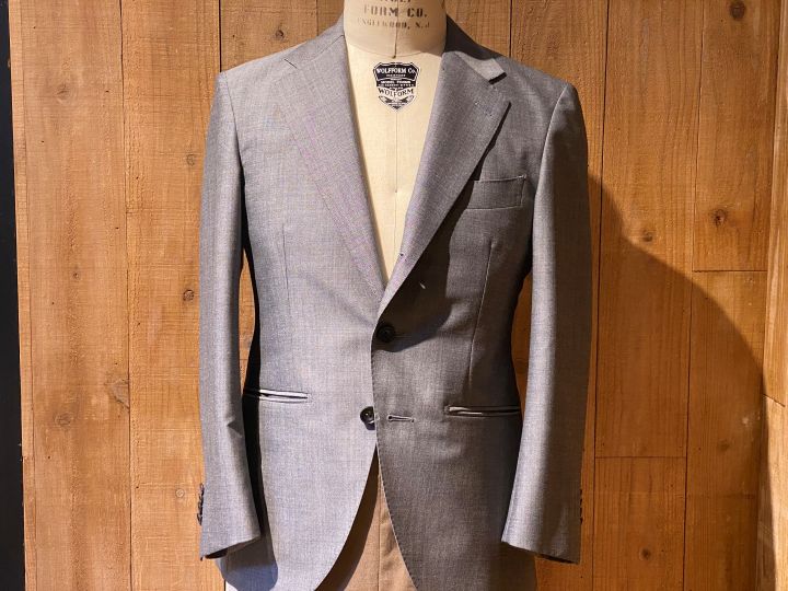お供いたしますスーツはこちらの2着。ここ最近の注文が多いやや明るめのネイビーとグレーです。