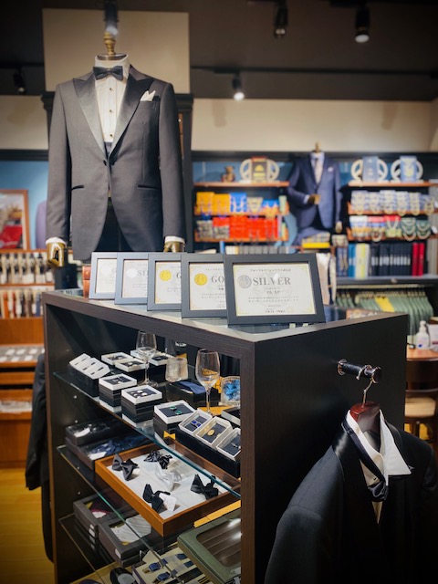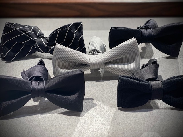 そういうわけで10月~11月は蝶ネクタイやポケットチーフなどアクセサリー関連を探されているお客様が多くなってくる時期でもあります。意外にも麻布テーラーにはその辺のフォーマルアクセサリーが充実しております。また、納期スケジュール次第ではタキシードやモーニングコート等のセレモニーウェアーもオーダーできますので是非スタッフへご相談ください。