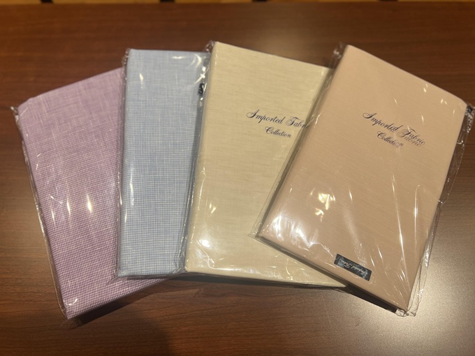 幅広いコレクションの中で国産生地、インポート生地を1枚ずつ組み合わせいただくことも可能です。