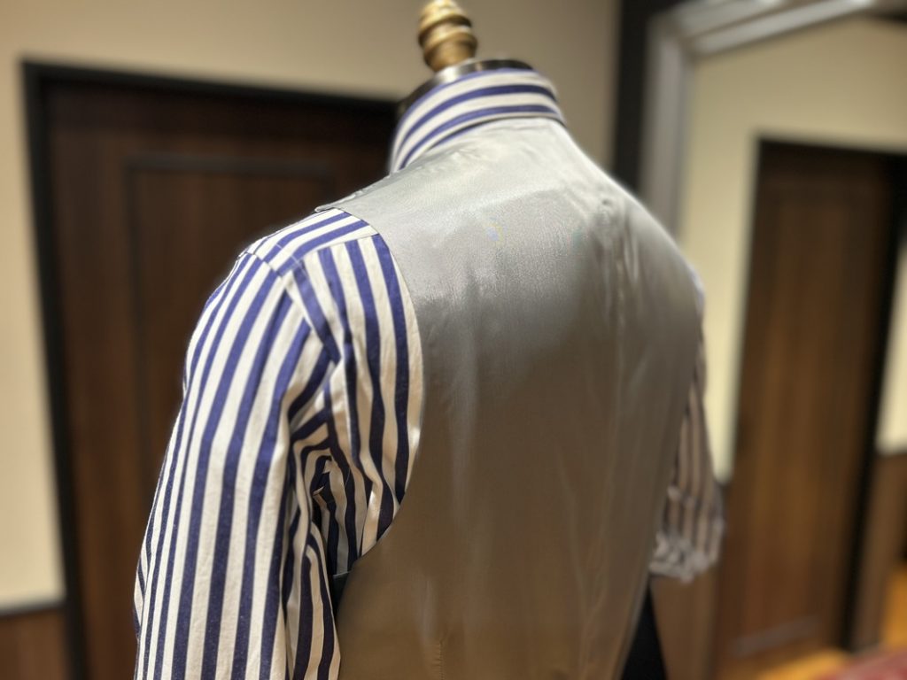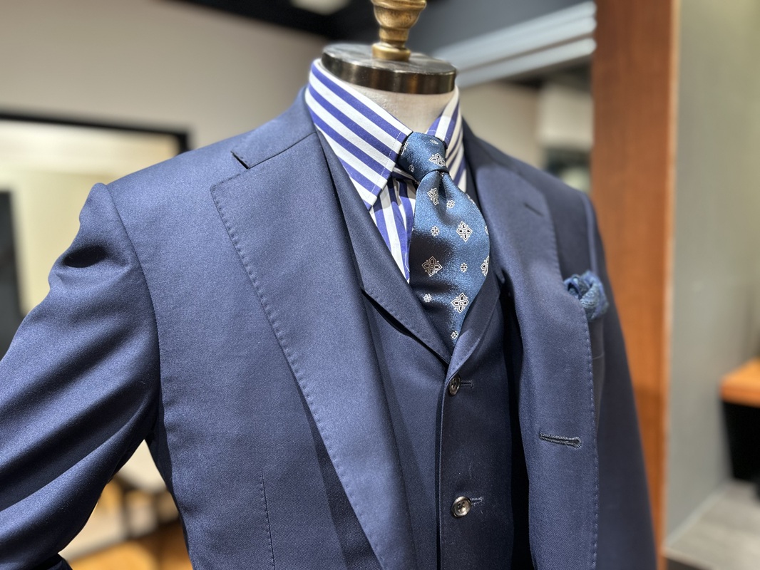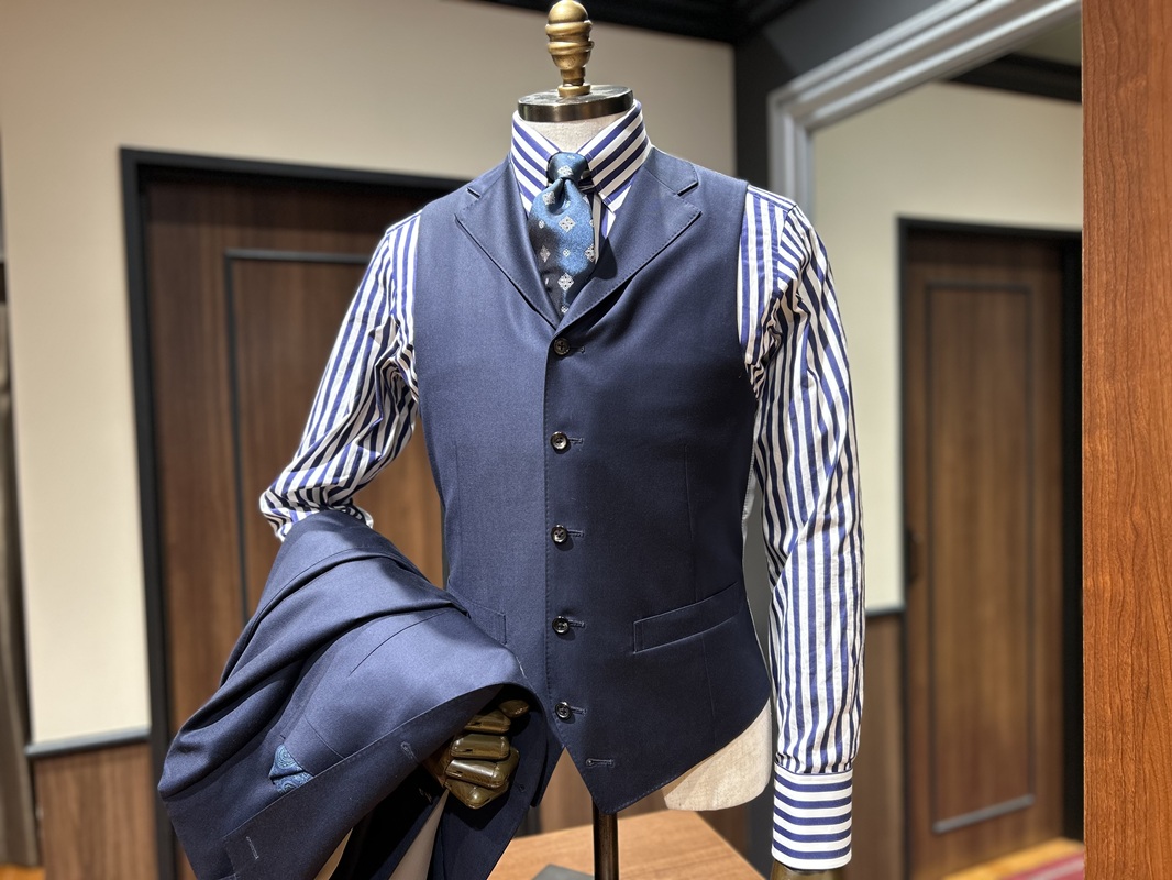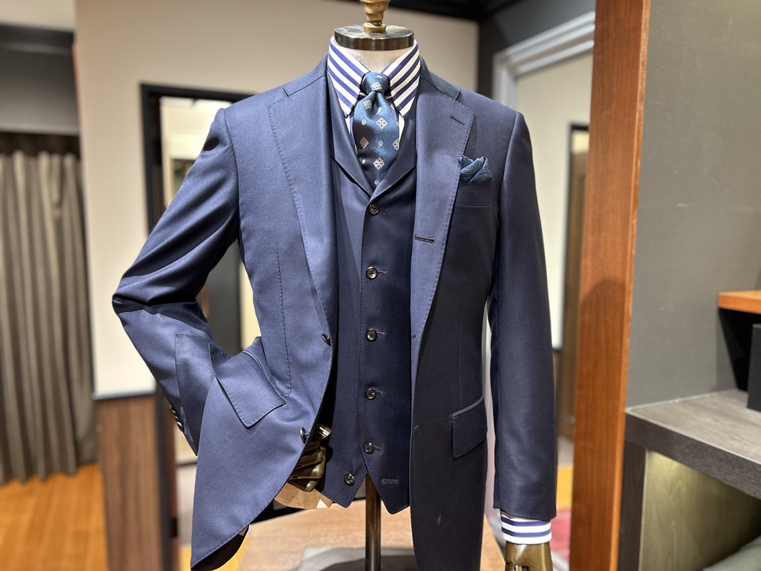 仕立ては麻布テーラーの中で最高仕上げのサルトリア仕様で作成し、仕立て映えも意識しました。