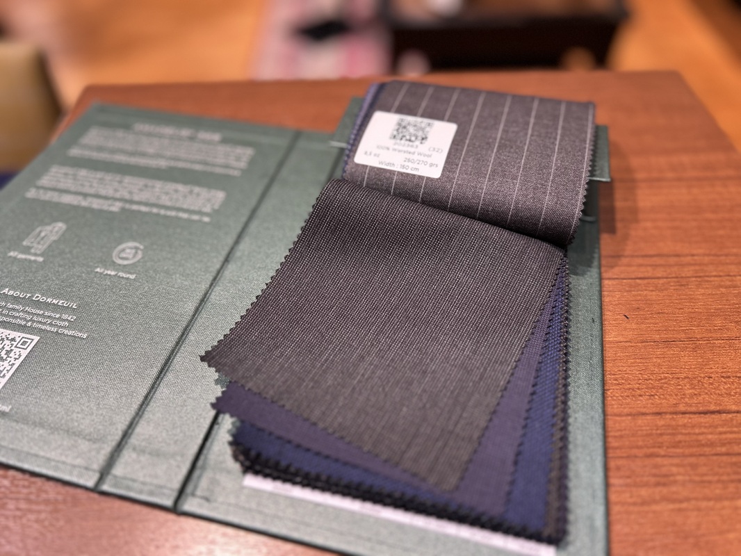 サンプルの仕立てはサルトリア仕立てで、細かい仕様とオプションも抜かりなくしています。