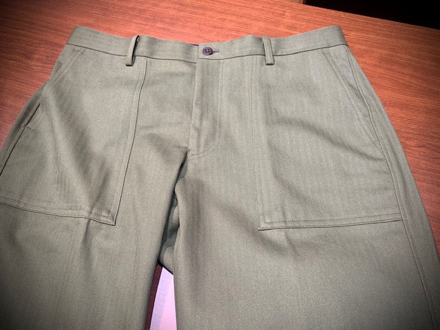 ゆったりとしたシルエットとフロントの大きいパッチポケット(L字ポケット)が特徴的なパンツです。