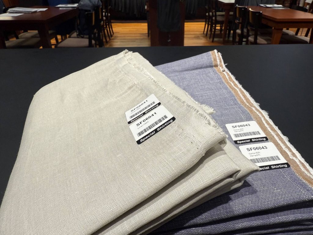 虎ノ門店のスタッフもどの生地で作成するかシャツ生地を迷いに迷っております(笑)
