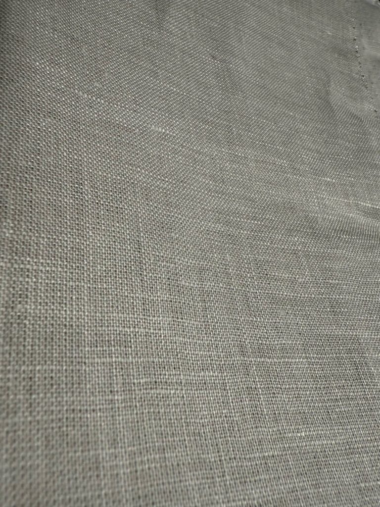 The fabric on the left is a slightly grayish ecru color made from 100% linen.