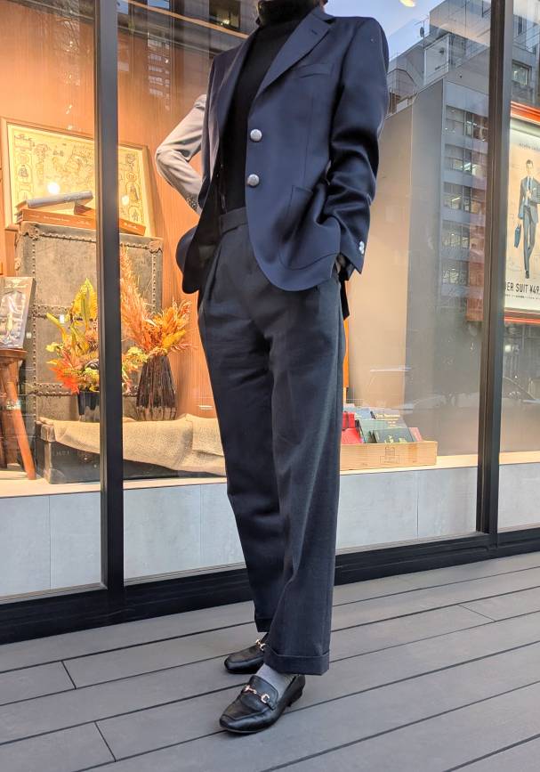 その際悩んだ、ジャケットとスラックスが仕上がりましたので、今回は個人的紹介ブログです(笑)