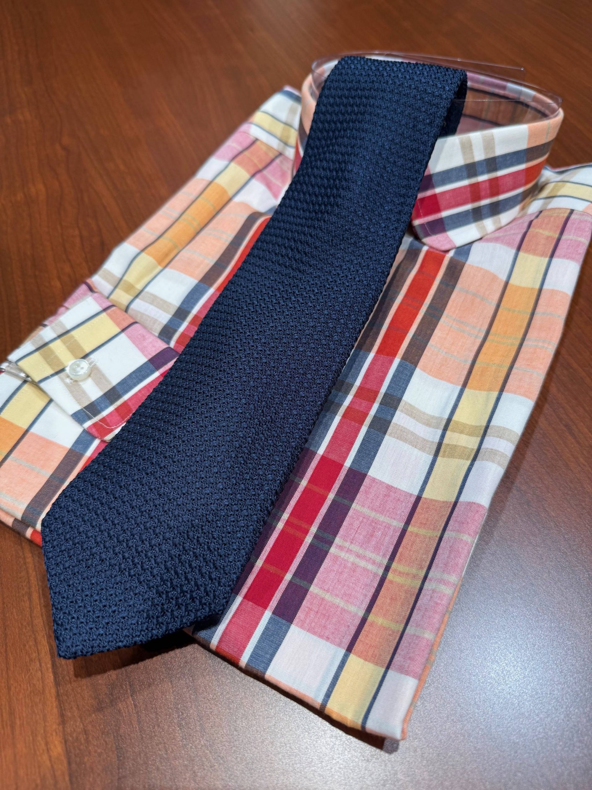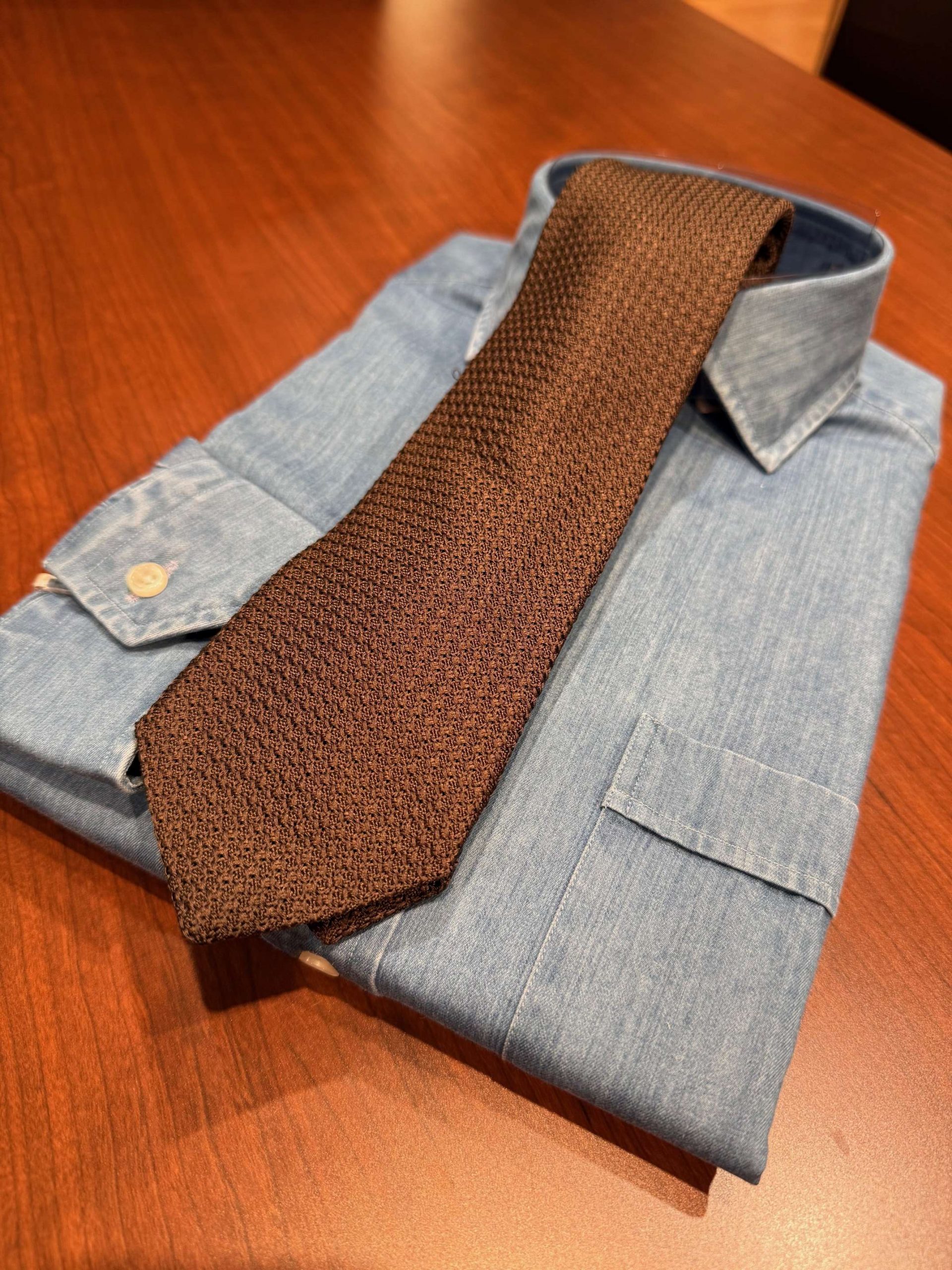 前回のドレッシーな雰囲気のネクタイに対して、今回はジャケパンスタイルにも合わせていただきやすい季節を感じられるタイになっております。