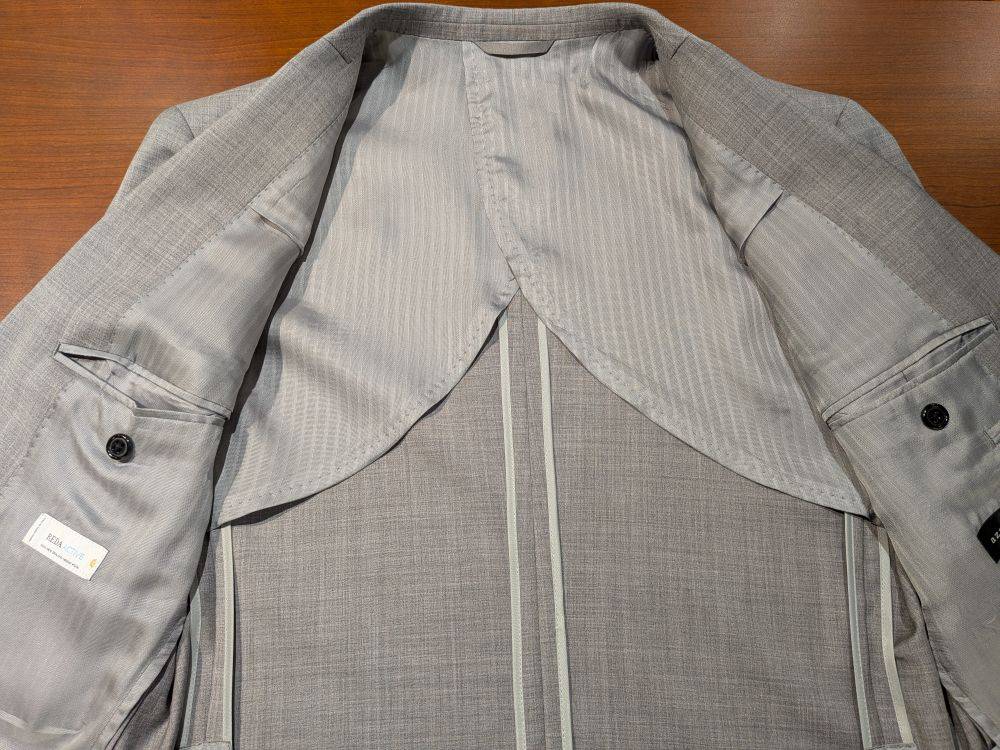 きちんと見える肩回りや、襟のロールなどはクラシックなスーツスーツスタイルを踏襲しながら、副資材で軽さと通気性を追求した仕立てです。裏地にはキュプラメッシュ裏地を採用しているのでよりさらっと通気性良く着用いただけます!