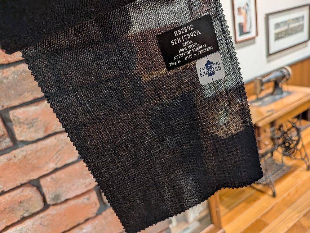 フレスコ素材は、独特なハリコシがあり仕立て映えする生地。組織織による清涼感と横双糸による防シワ性、ナチュラルストレッチ性で快適さも!
