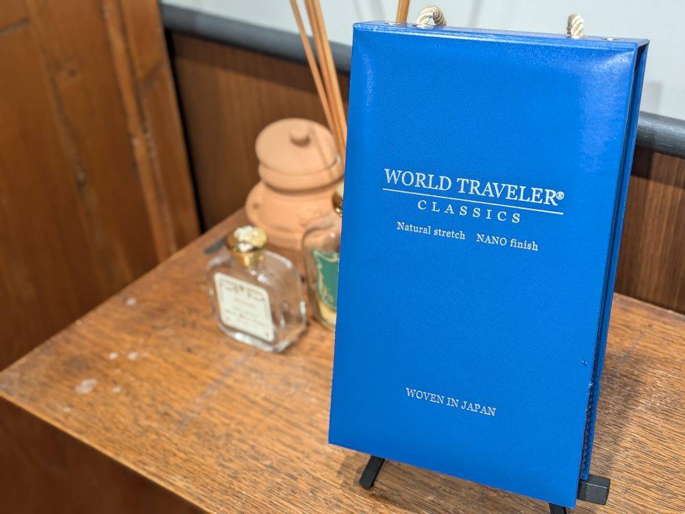 撥水加工が施され、ストレッチ+防シワ性に優れた機能性生地です。日本の気候に適したドライな風合いと優れた通気性が特徴です。