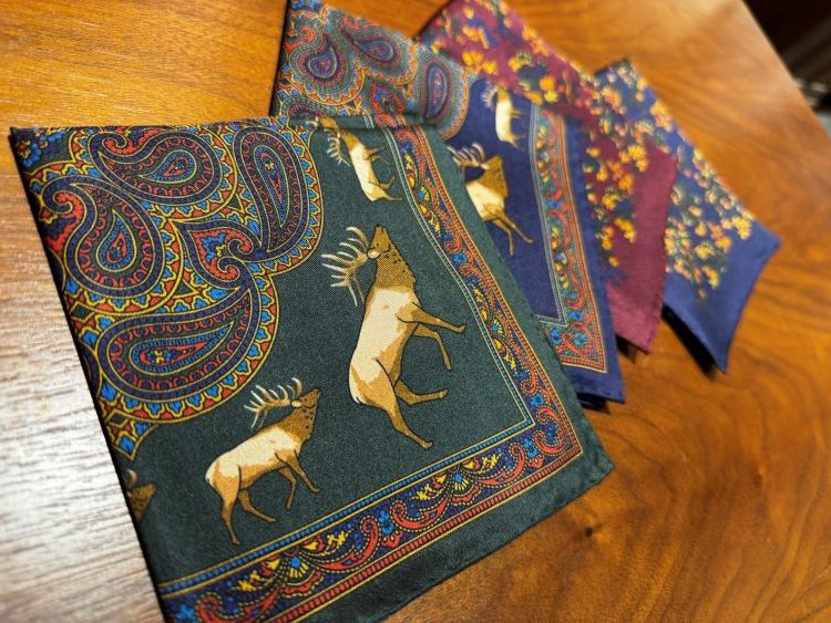 使用した、ネクタイとポケットチーフとなります。