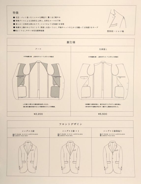 キュプラ裏地がデフォルトのクール仕立て ( ジャケット価格+¥2,200 tax included )
