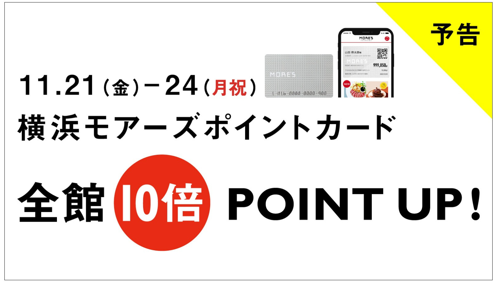 11/21~24の4日間、モアーズ館内でご利用いただけるポイントが10倍になります。