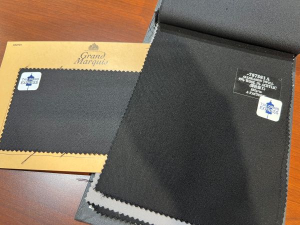 まずは生地選びからですが、麻布テーラーでは、AZABU BLACKSというバンチブックがあり、黒の中でも深い黒や静電気防止など生地をご用意しております。
