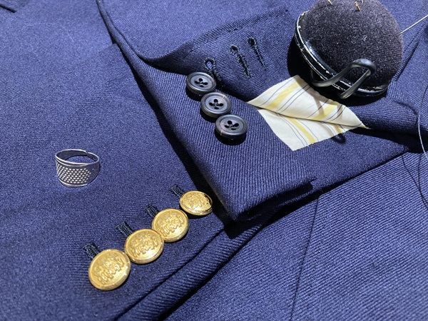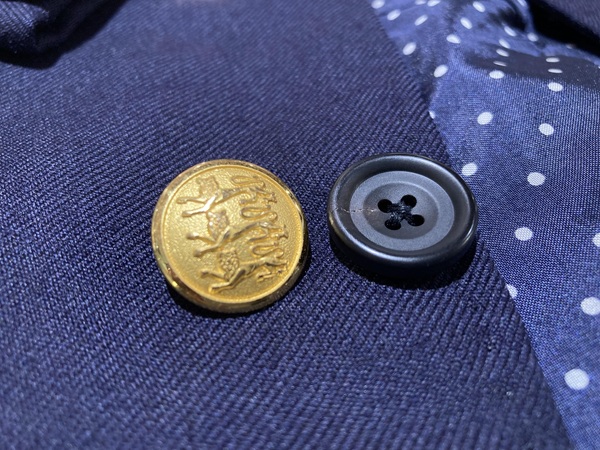 付け替えたのは、水牛ボタンが付いていたシングルのネイビージャケット。