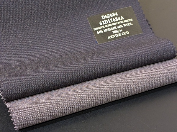 ドーメル社のモヘア生地の代名詞「SUPER BRIO」、世界最高峰の軽量キッドモヘアをしようした逸品に織りによるストレッチ性を加えた麻布テーラーの別注生地になります。