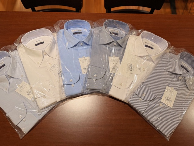 「オーダーだと仕上がりまでに約1ヵ月くらいかかるから、着用の日にちに間に合わない!」、「急遽明日着るシャツが必要になった!」、「昔のシャツを久しぶりに着てみたらきつい!着れるものがない!」などお困りのことがございましたらお気軽にお立ち寄りください。