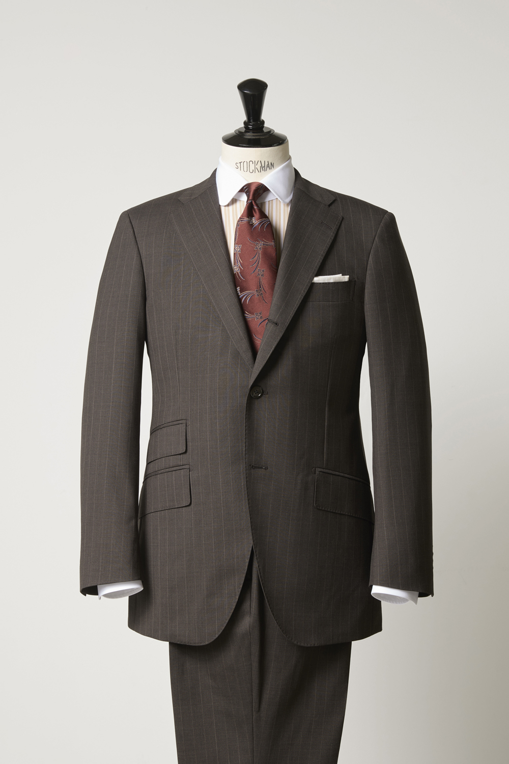 イタリアのMarlaneによる「VIVO」。強撚双糸が生む反発力とドライなタッチが特徴です。ブラウンストライプがクラシックを軽快に更新し、発色の美しさと仕立て映えするハリ感を実現。躍動感ある着心地を楽しめる春夏素材です。◼︎オーダースーツ ¥71,500【M62800】+水牛釦¥3,850