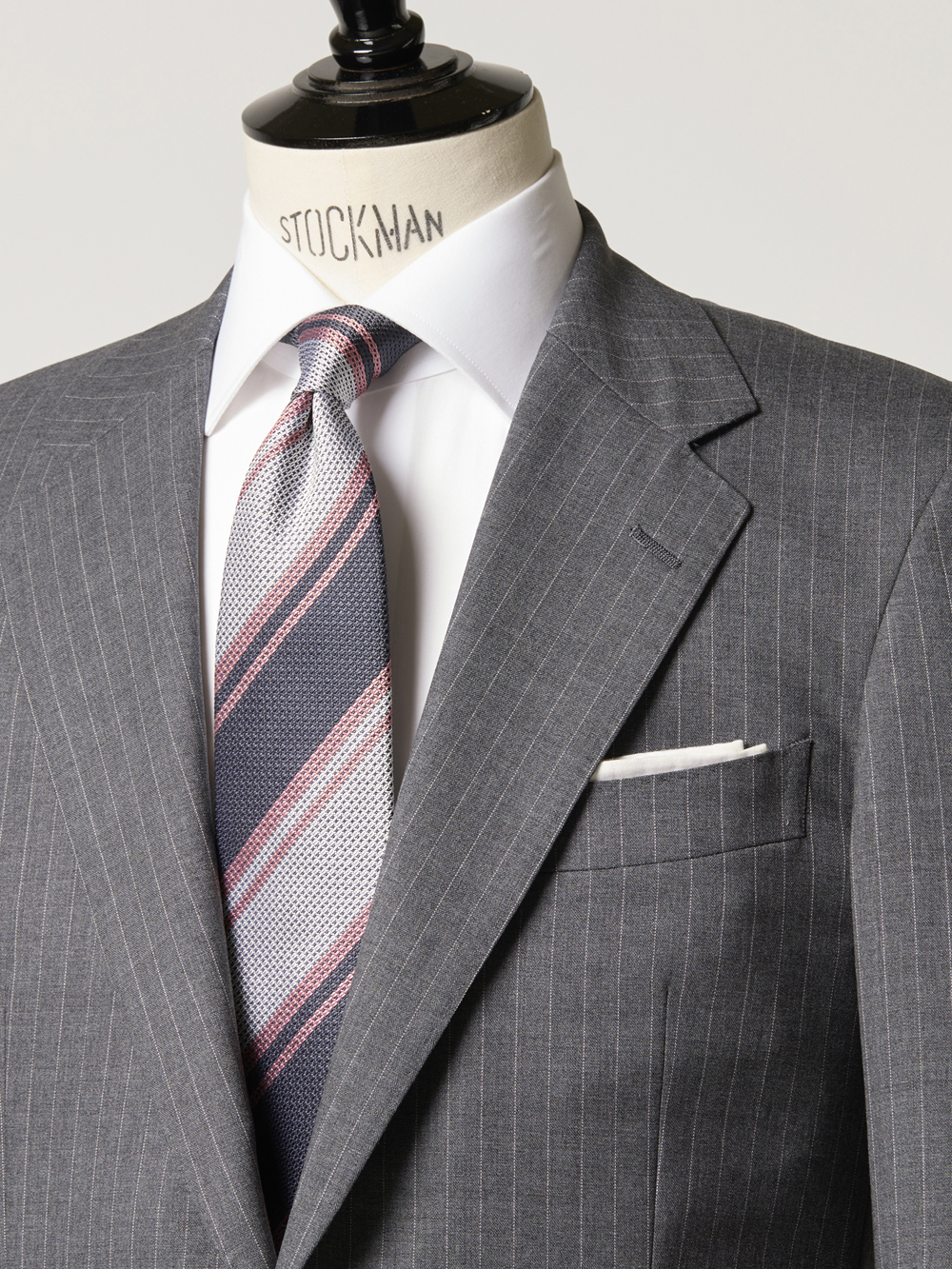 撥水性と高いシワ回復力を備えた高機能ウール。移動や出張の多い日常でも型崩れしにくく、常に整った印象を保ちます。ライトグレイの清涼感ある表情が春夏の都市に映え、軽やかな着心地と端正さを両立。忙しいビジネスシーンに寄り添う一着です。◼︎オーダースーツ ¥60,500【S52849】+水牛釦¥3,850