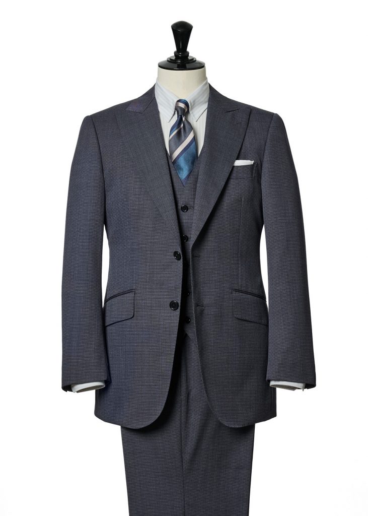 国内最大級の毛織物メーカーによる共同開発素材。強撚の双糸を使用し、ナチュラルストレッチと撥水・撥油加工を施した機能性ウール。シワの回復力にも優れ、出張や移動の多いビジネスパーソンに最適です。襟付きベストを合わせれば、クラシックで実用的な3ピーススーツが完成します。◼︎オーダースーツ ¥80,300【S51816・100% WOOL 300–340g/m】+水牛釦¥3,850